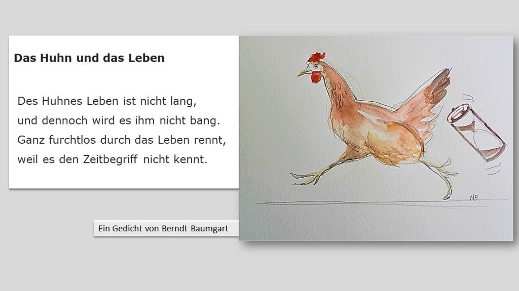 So schwebte er langsam weiter. Über die Straße entlang bis zum nächsten Dorf. Dort spielten Kinder, und Hühner liefen herum. B. schwebte tiefer hinunter. Er konnte die Höhe wechseln. Jetzt hörte er die Kinder schreien und die Hühner gackern. Also konnte er nicht nur denken, sich erinnern, sondern auch hören und sehen. Ein Ball landete vor ihm. Es juckte ihn, er wollte ihn zu den Kindern kicken. Er griff danach. Aber er griff ins Leere. Also konnte er nicht mehr handeln. Jedenfalls nicht mehr in der Welt der Lebenden. Mit dieser Situation musste er zurechtkommen. Sollte das jetzt immer so weitergehen? Ewige Einsamkeit? Diesen Gedanken mochte er nicht. Gewiss, er war zeitlebens (lustig, „zeitlebens“, dieses Wort, dachte er) ein Einzelgänger gewesen, brauchte nicht immer menschliche Gesellschaft. Aber ganz ohne Andere? Ganz allein? Für immer und ewig? Das war selbst für ihn traurig. Soll er jetzt „zeittodes“ auch immer allein sein?